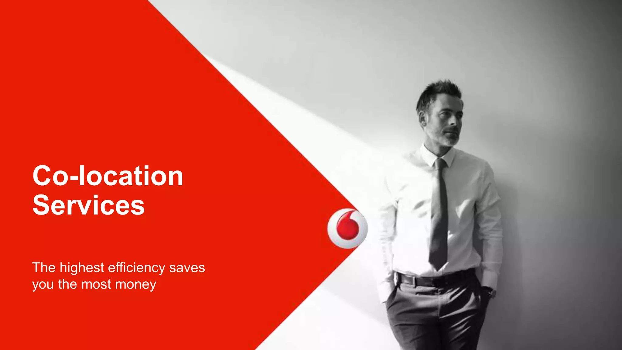 The document discusses Vodafone's co-location services which provide data center space and infrastructure. It notes that the highest efficiency saves customers the most money as Vodafone data centers have a Power Usage Effectiveness of 1.25 to avoid wasting money on expensive power. It has nine data center locations across the UK and Ireland that offer the highest levels of security and quality, and connectivity to Vodafone's network. The document promotes Vodafone's co-location services as offering the most cost efficient solution through high efficiency energy usage and a variety of infrastructure and connectivity options.