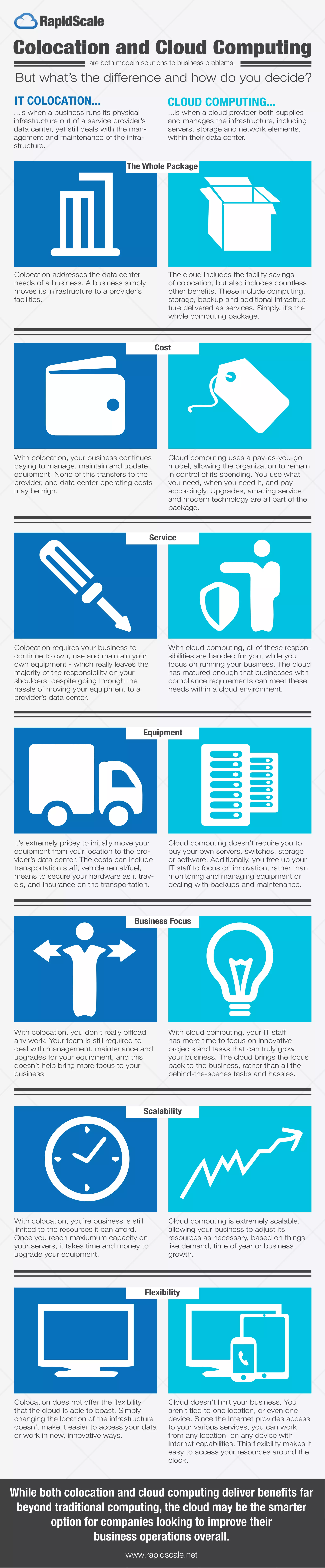 Colocation involves businesses managing their own infrastructure in a provider's data center, while cloud computing offers a fully managed service that reduces operational responsibilities. Cloud computing is scalable, flexible, and utilizes a pay-as-you-go model, allowing businesses to focus on innovation without the burden of maintenance. Overall, cloud computing may present a smarter option for businesses seeking to enhance their operations beyond traditional computing solutions.