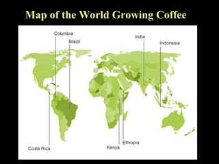 Colombia is a major producer of coffee, which is grown in a region known as the Coffee Growers Axis at high altitudes between 3600-6300 feet as well as at low altitudes from sea level to 3000 feet. Colombian coffee grows in volcanic soil and a climate suitable for coffee plants in the natural environment of this region.