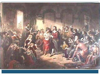The Jamestown and Plymouth colonies experienced many difficulties in their early years. Jamestown settlers struggled with disease, attacks from Native Americans, and a lack of food. John Smith emerged as a strong leader who forced the colonists to work and build houses and plant crops. His leadership helped the colony survive, but conditions remained difficult. The cultivation of tobacco eventually boosted the Jamestown economy and led to the importation of indentured servants and African slaves to work the tobacco fields.