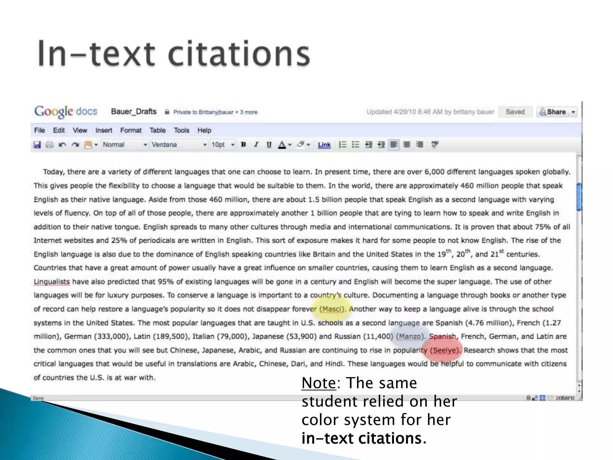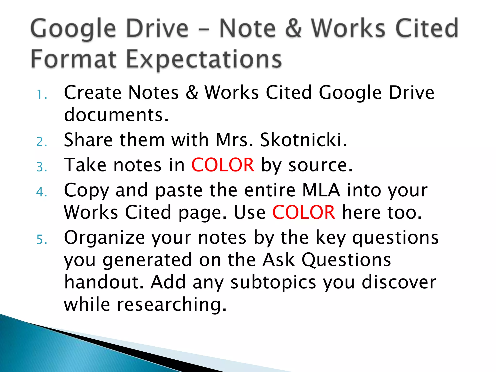 The document provides guidance on taking effective notes for research papers. It emphasizes using different colors to distinguish notes from different sources, putting quotes in your own words, taking more notes than needed, and only using peer-reviewed sources such as journals, books, and databases. Notes should be organized with citations and include the student's own analysis. Color-coding notes and citations helps keep track of sources.