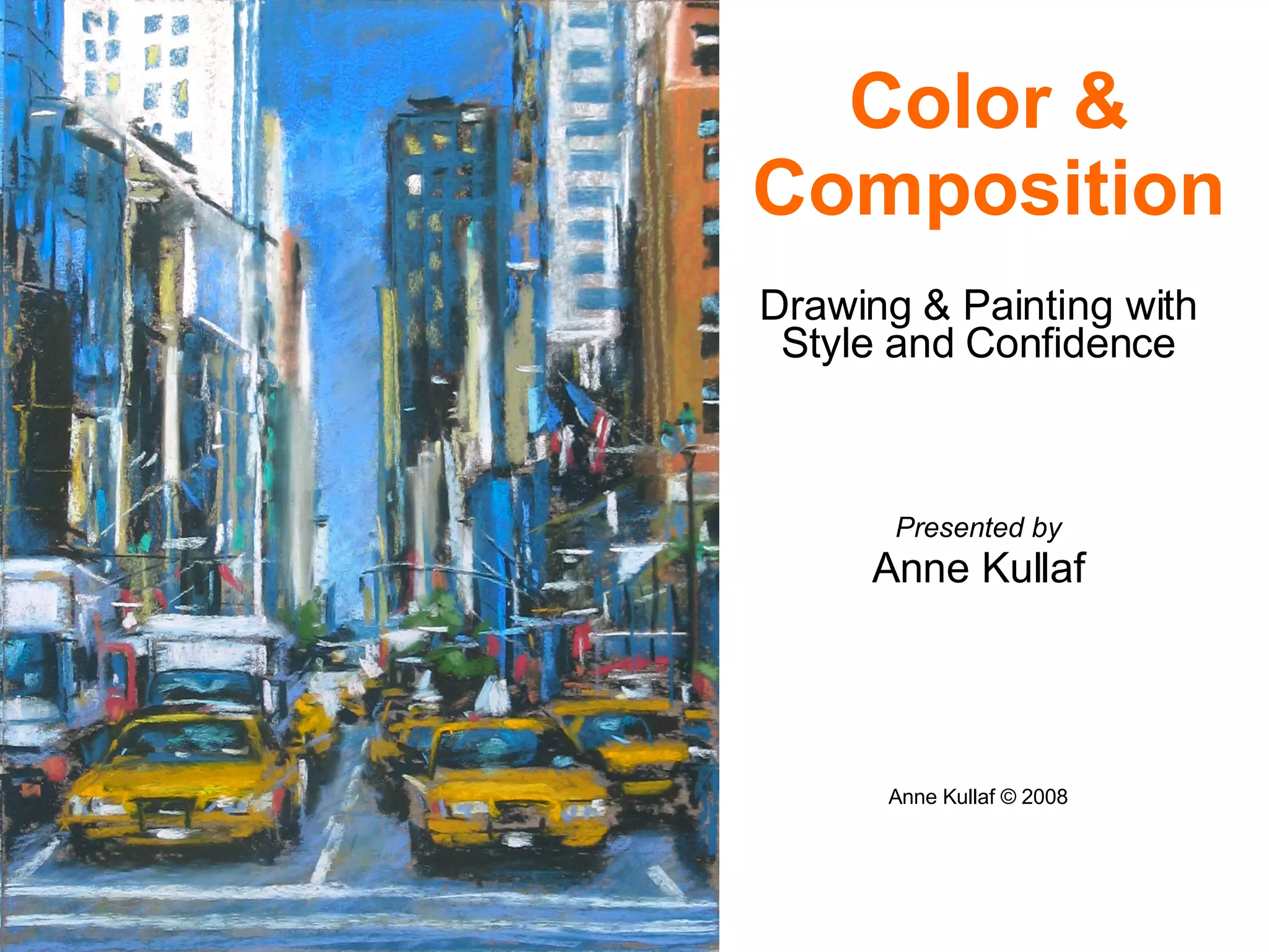 The document provides an overview of a course on drawing and painting that focuses on color and composition. It covers color basics like color harmony and using a limited palette. It also discusses compositional techniques such as the rule of thirds and use of negative space. Examples are given to illustrate concepts like using temperature and values to set mood. The document emphasizes experimenting with different techniques and analyzing what works well in compositions.