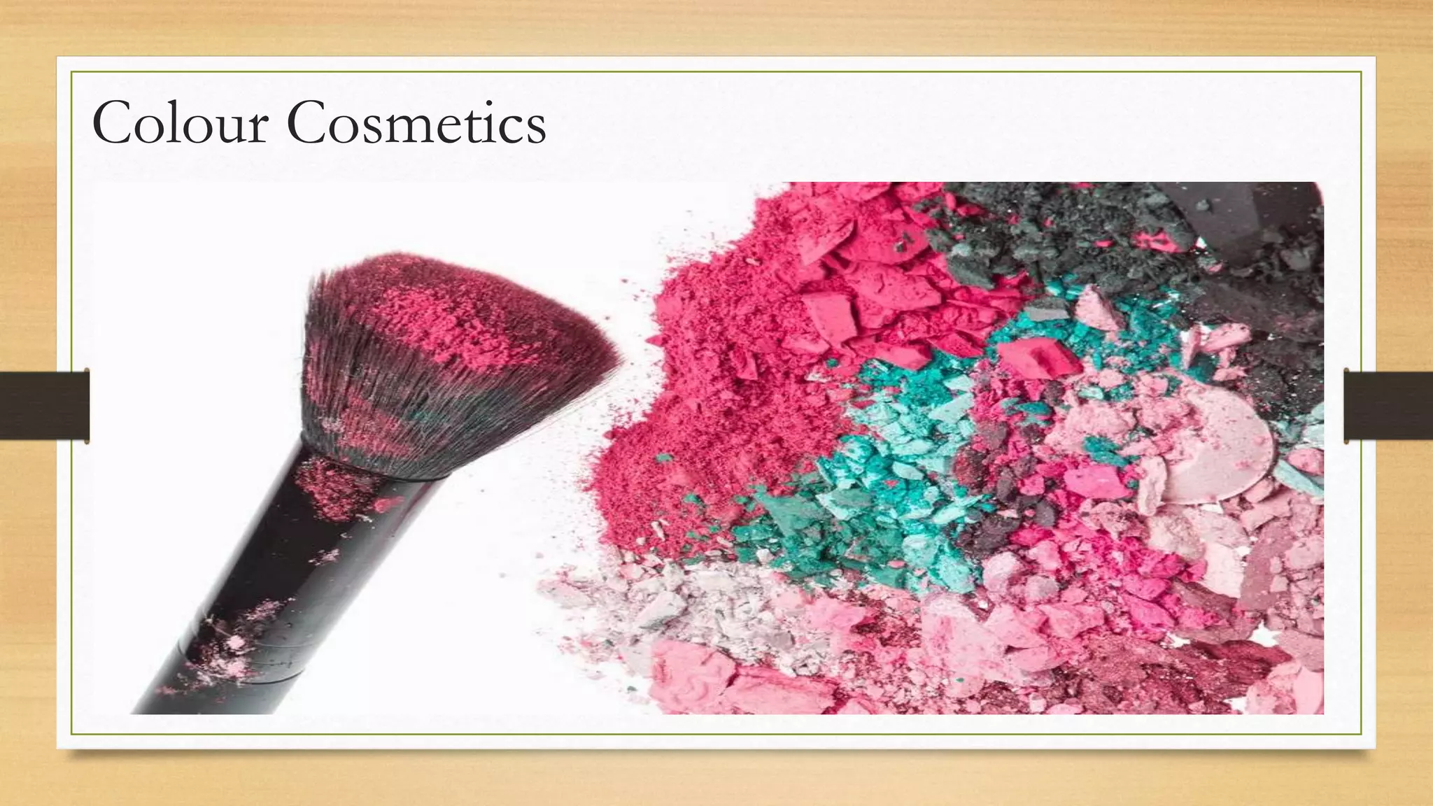 Colorants are ingredients that impart or alter the color of cosmetic products. Dyes dissolve to color the skin, while pigments coat the skin with an insoluble powder film. Colorants are used to make cosmetics attractive and are classified as organic or inorganic. Common inorganic pigments include chromium dioxides and iron oxides. Titanium dioxide and zinc oxide are widely used white pigments. Antioxidants like vitamins C and E, along with coenzyme Q10, protect skin from free radicals.
