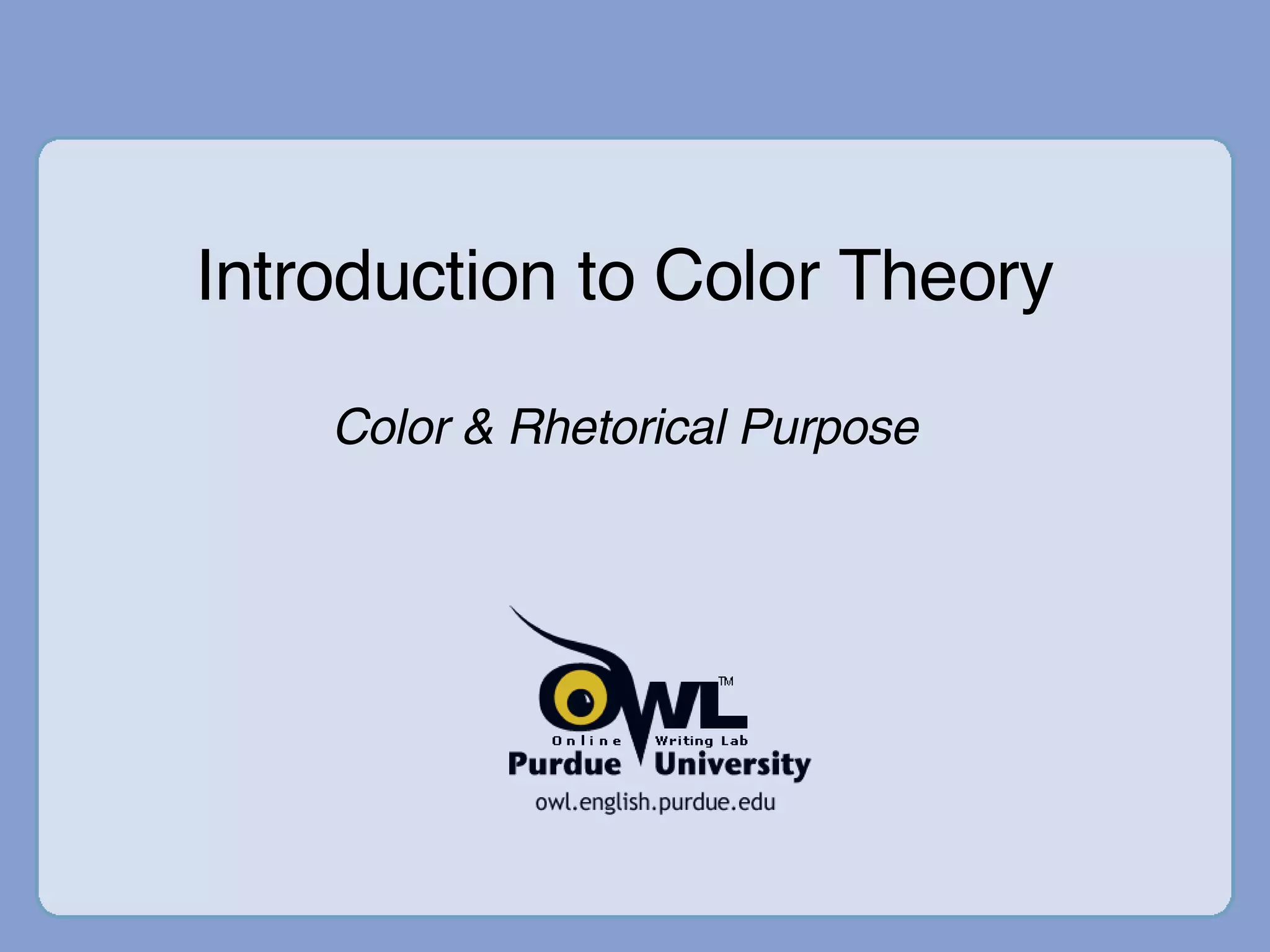 Color theory provides guidance for mixing colors to create aesthetically pleasing blends, maximize readability, and convey meaning through cultural associations. At its core, color is composed of light. Primary colors cannot be created by mixing other colors, while secondary colors are made by mixing primaries and tertiary colors mix primaries and secondaries. Colors can be arranged on a color wheel to purposefully choose combinations based on their properties, such as using complementary colors opposite each other for contrast or analogous colors next to each other for harmony. Color contrast is important for readability when choosing text and background colors.