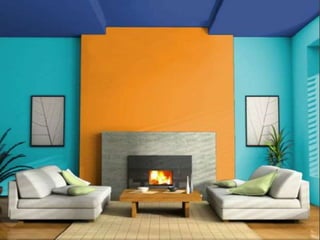 This document discusses color theory and how color and lighting affect interior design. It defines color as the visual perceptual property arising from the spectrum of light reflected or emitted by an object. The document outlines color schemes including monochromatic, complementary, analogous, and split complementary. It discusses how hue, value, and saturation impact color perception and how tints, tones and shades are created. The document also addresses how lighting impacts color appearance and can be used to manipulate mood. Color and lighting are presented as important artistic elements that designers consider for their psychological and physical effects.