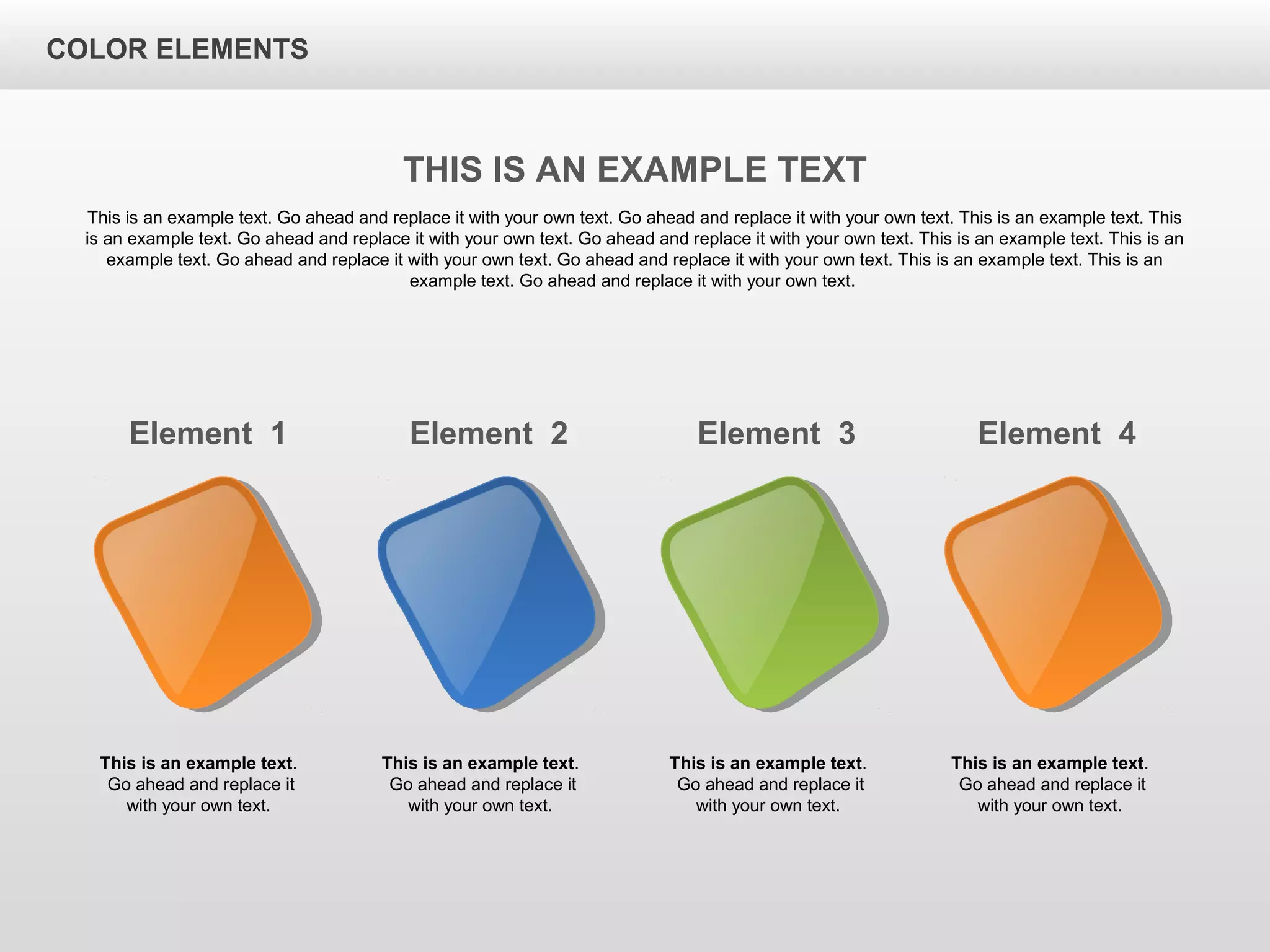 The document contains repeated blocks of text instructing the reader to replace the example text with their own text. There are multiple sections with labeled elements that can be modified. The full document appears to serve as a template or example for creating a customized document with replaced text.