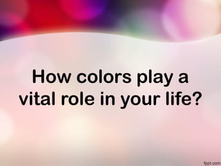 This document discusses color theory and the psychology of color. It explains that color is a component of light separated during reflection and is influenced by the light source. There are three properties of color: hue (the name of the color), value (the lightness or darkness), and saturation (the purity or grayness). Different colors have different emotional associations, such as red being associated with warmth, anger, and passion. The document also contrasts when to use color versus black and white in photography, noting that color draws attention while black and white removes distraction from the message.