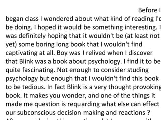 This document summarizes Jennifer Wall's final project experimenting with the psychological effects of color. The experiment involved wearing a different color (red, blue, green, or black) each day and observing how others responded. However, Jennifer had difficulty remembering to focus on responses and determining if colors truly affected reactions. She concludes larger, longer experiments with more participants are needed to better understand if colors influence interactions. She provides suggestions for improving the methodology in future experiments on this topic.