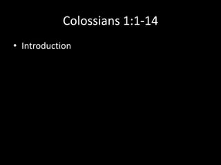 Paul writes to the believers in Colossae to encourage them. He expresses thanks for their faith, love, and understanding of God's grace. Paul prays that they will grow in spiritual wisdom and strength through the Holy Spirit, bearing good fruits, and that they will know the fullness of God's inheritance through Jesus Christ, who rescued them from darkness.