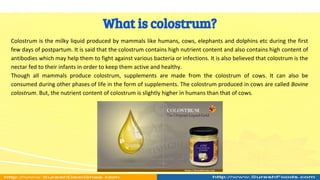 Colostrum, a nutrient-rich liquid produced by mammals in the early postpartum days, is particularly high in antibodies and beneficial compounds like lactoferrin, making it effective for immune support, gut health, and muscle healing. Bovine colostrum, derived from cows, has gained popularity as a supplement for enhancing athletic performance and overall health, although the nutrient content is slightly higher in human colostrum. Despite its many benefits, further scientific research is needed to fully understand the impact of bovine colostrum supplementation in adults.