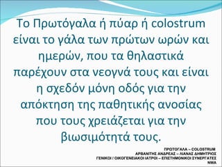 ΠΙΟ ΣΥΓΚΕΚΡΙΜΕΝΑ Το COLOSTRUM δεν μπορεί να κατασκευαστεί τεχνητά. Εναρμονίζει, αναδομεί και διαμορφώνει το ανοσοποιητικό ανθρώπινο σύστημα. Κάνει τον οργανισμό αποτελεσματικότερο. Ρυθμίζει, θεραπεύει, υποστηρίζει και προστατεύει κυρίως τους άτονους οργανισμούς. ΠΡΩΤΟΓΑΛΑ – COLOSTRUM ΑΡΒΑΝΙΤΗΣ ΑΝΔΡΕΑΣ – ΛΙΑΝΑΣ ΔΗΜΗΤΡΙΟΣ ΓΕΝΙΚΟΙ / ΟΙΚΟΓΕΝΕΙΑΚΟΙ ΙΑΤΡΟΙ – ΕΠΙΣΤΗΜΟΝΙΚΟΙ ΣΥΝΕΡΓΑΤΕΣ NWA