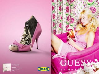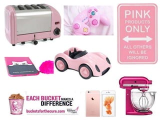 The document discusses how colour influences consumer behaviour and marketing. It provides examples of how different colours like red, yellow, blue, green, orange, pink, purple, black are perceived and can stimulate certain emotions. It also gives examples of how companies have successfully used colour in their branding and product packaging to influence sales and target certain demographics like Coca Cola switching to black packaging for Coke Zero to target males. Culture can influence colour meanings so marketers must be aware of this. Colour appropriateness is also important for products.