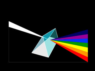 Newton discovered that white light is made up of the visible light spectrum when he passed sunlight through a prism. The colour wheel is used to demonstrate the relationships between primary, secondary, and tertiary colours. Primary colours are red, yellow and blue which can be mixed to create secondary colours of orange, green and purple. Tertiary colours result from mixing a primary and secondary colour adjacent on the wheel.