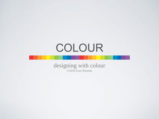 The document discusses various aspects of color including hue, value, intensity, temperature, primary colors, secondary colors, color harmony, monochromatic, analogous, complementary, triadic, split complementary, and double complementary color schemes. It also covers additive and subtractive color, color gamuts, and how color is perceived differently based on context.