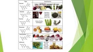 This document discusses natural and synthetic food colorings. It begins by explaining how the color of food impacts acceptance and describes the natural pigments found in fruits and vegetables, including chlorophylls, carotenoids, anthocyanins, flavonoids, and others. It then provides details on each type of natural pigment. The document also discusses the use of synthetic dyes approved for food coloring and precautions for their safe use.