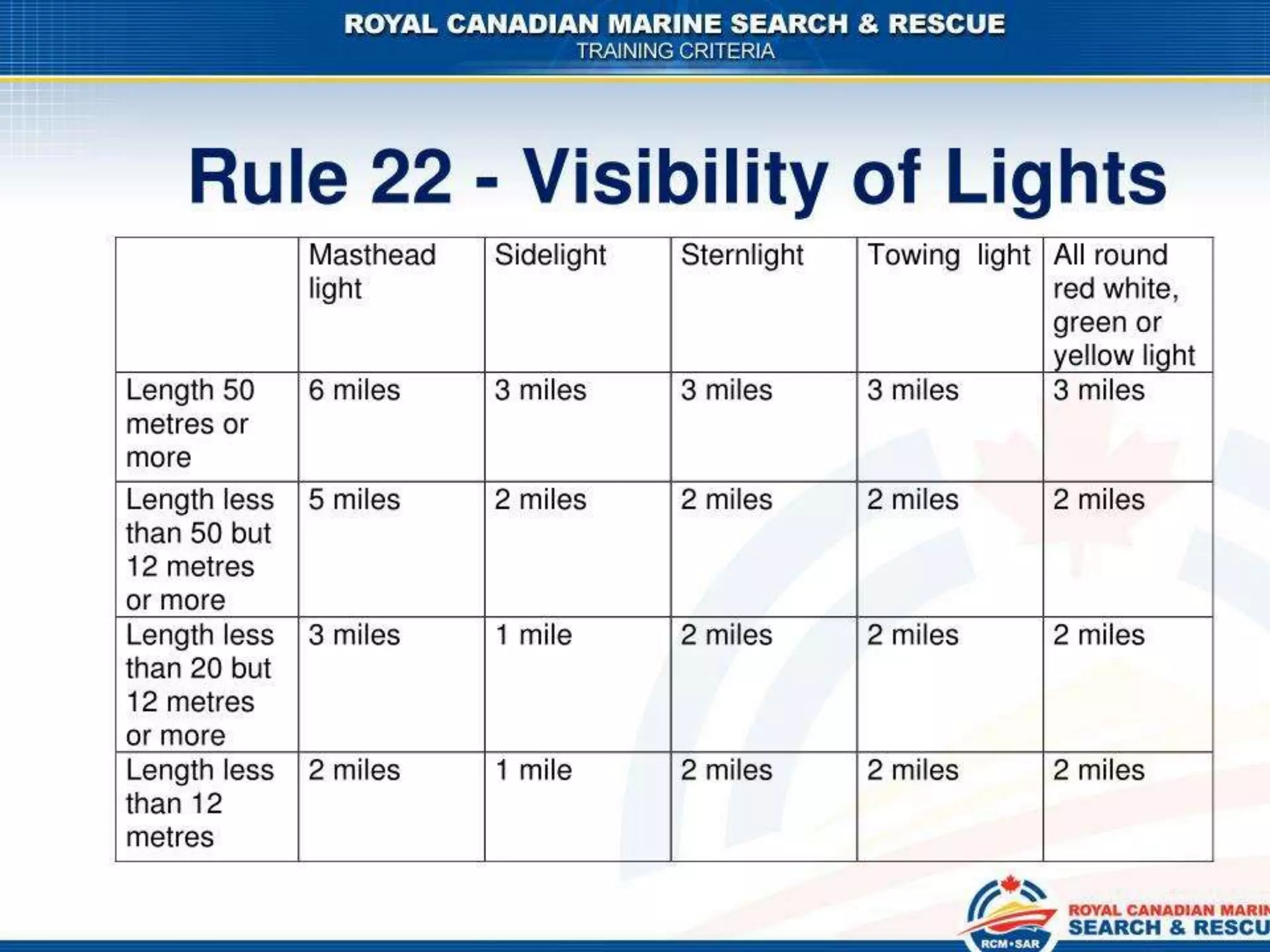 • (a) The installation of lights with ranges prescribed in Rule 22, until four