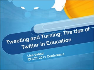 This document summarizes a presentation about using Twitter in education. It provides an overview of what Twitter is, how to create an account and use basic features like tweets, followers, hashtags and retweets. It then discusses how Twitter can be used in the classroom to engage students and supplement learning, as well as for educator professional development by following conferences and organizations. Finally, it lists some tips for using Twitter in education and recent news articles about Twitter.