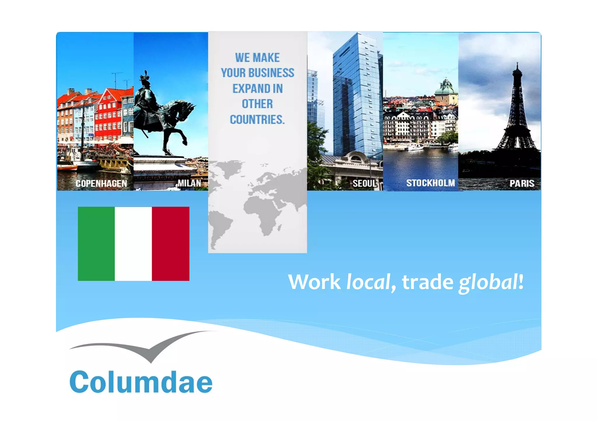 L'agenzia si specializza nello sviluppo del commercio internazionale per le imprese italiane, contribuendo ad aumentare la loro visibilità globale e a trovare nuove opportunità sui mercati europei e asiatici. Offriamo una vasta gamma di servizi, tra cui ricerca clienti, preparazione di incontri commerciali, e promozione di prodotti nelle fiere internazionali. Le nostre sedi sono situate in diverse città, tra cui Stoccolma, Parigi, Copenaghen e Milano.