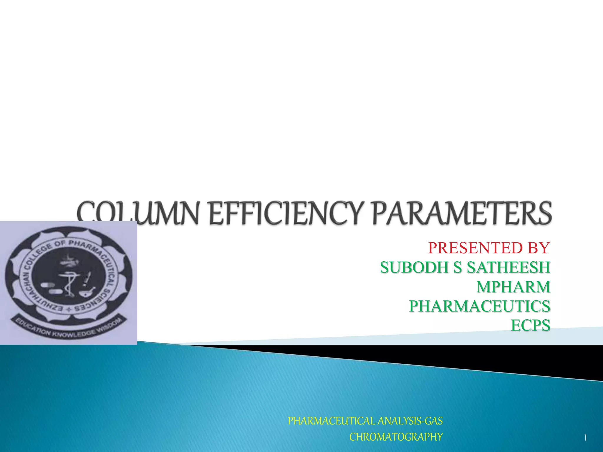 The document discusses key concepts in gas chromatography including theoretical plates, resolution, retention time, retention volume, separation factor, height equivalent to a theoretical plate (HETP), peak asymmetry, stationary phases, and considerations for choosing stationary phases. It provides definitions and equations for these terms and concepts. Examples of common stationary phase materials and their applications are also presented.