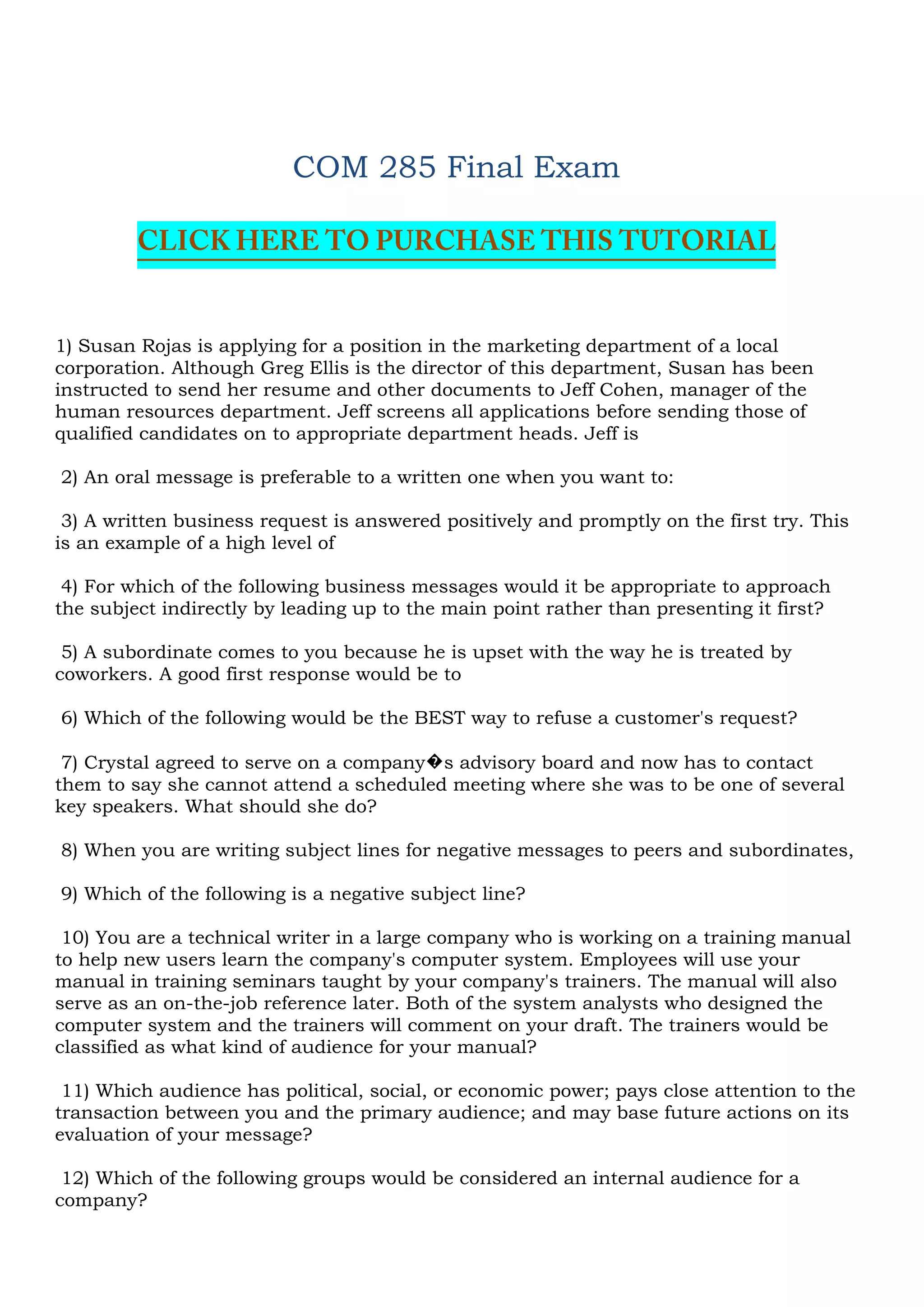 1. Susan Rojas has applied for a marketing position and been instructed to send her application materials to the human resources manager, Jeff Cohen, who screens all applications before passing qualified candidates to department heads.