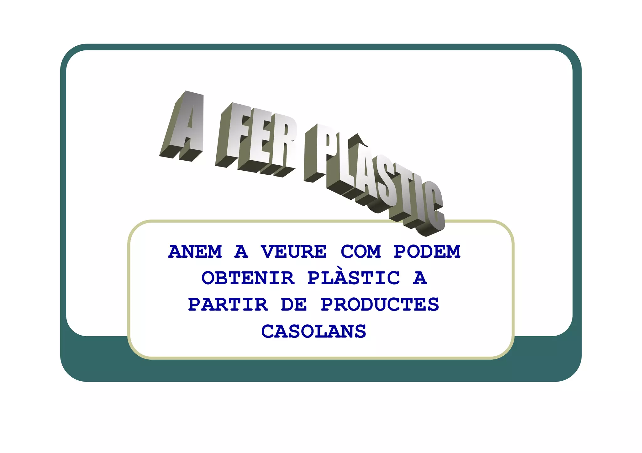 This document provides instructions for making plastic at home from milk and vinegar. The process involves heating milk with a small amount of food coloring, then adding vinegar which causes the casein protein in the milk to separate out into a solid plastic-like material. This material is collected on a paper filter as the liquid drains away. After drying for a day or two, the result is a homemade plastic ball or sheet that can be molded from the casein plastic produced from common household ingredients.