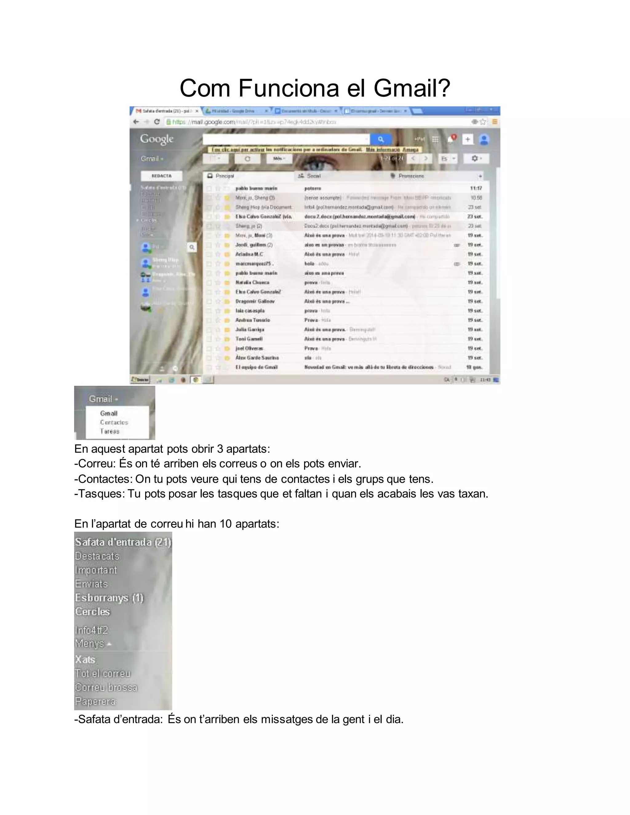 -Safata d’entrada: És on t’arriben els missatges de la gent i el dia.