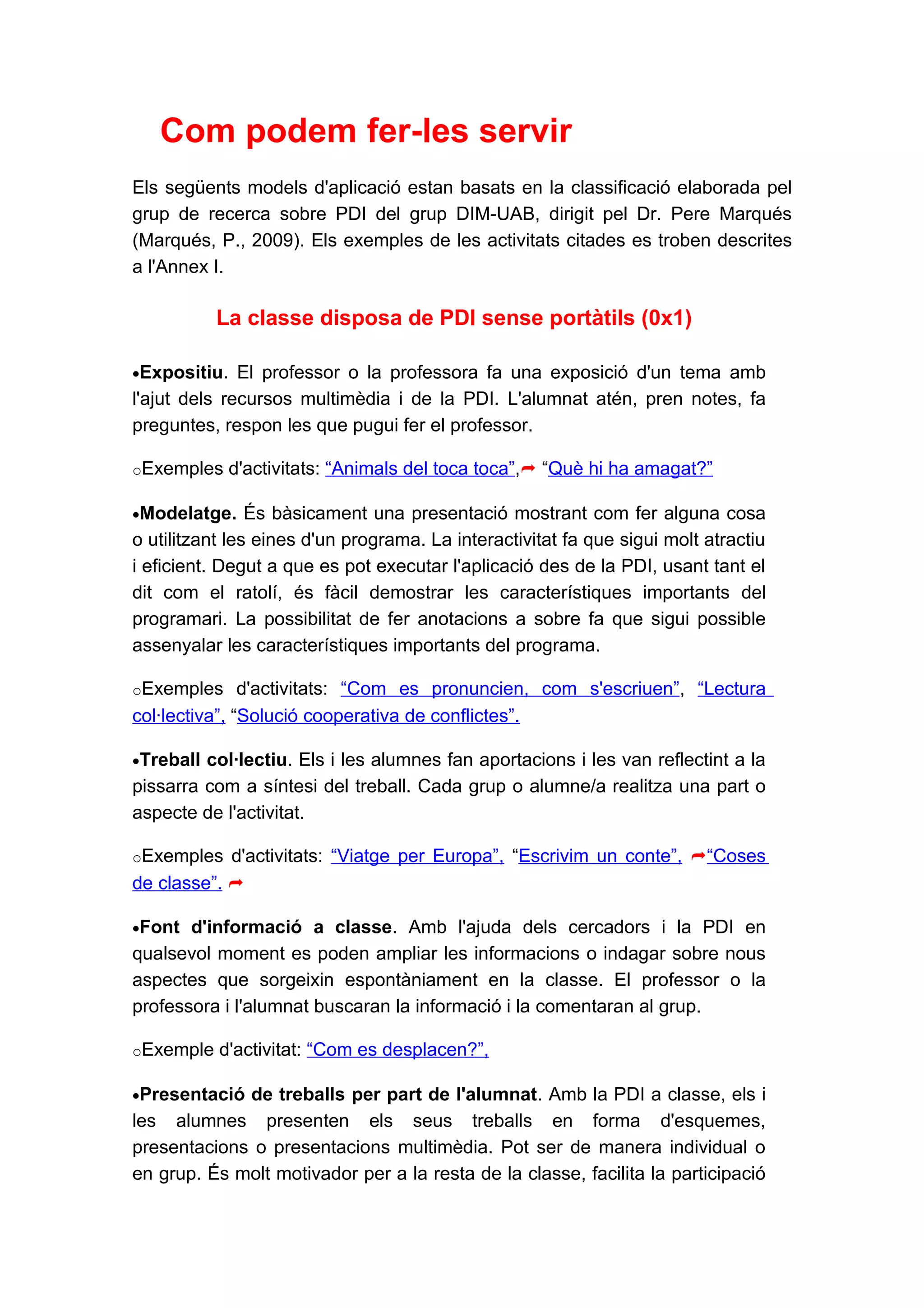 (Marqués, P., 2009). Els exemples de les activitats citades es troben descrites