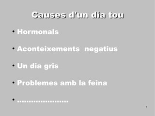 tou ● Hormonals ● Aconteixements negatius ● Un dia gris ● Problemes amb la feina ● ...................... 2