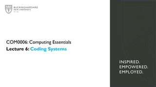 •Binary for mathematical calculations vs. coding systems for character representation.