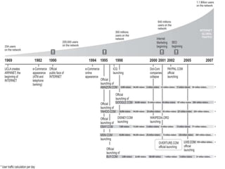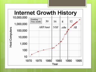 The document discusses the historical evolution of the internet, comparing it to earlier communication technologies such as the telephone, telegraph, and television. It highlights key developments including the invention of HTML by Tim Berners-Lee and the emergence of the first web browser, Mosaic, as well as addressing issues related to digital divides and internet penetration statistics across different regions. Additionally, it examines the implications of digital access as a moral and political issue, especially in rural areas.