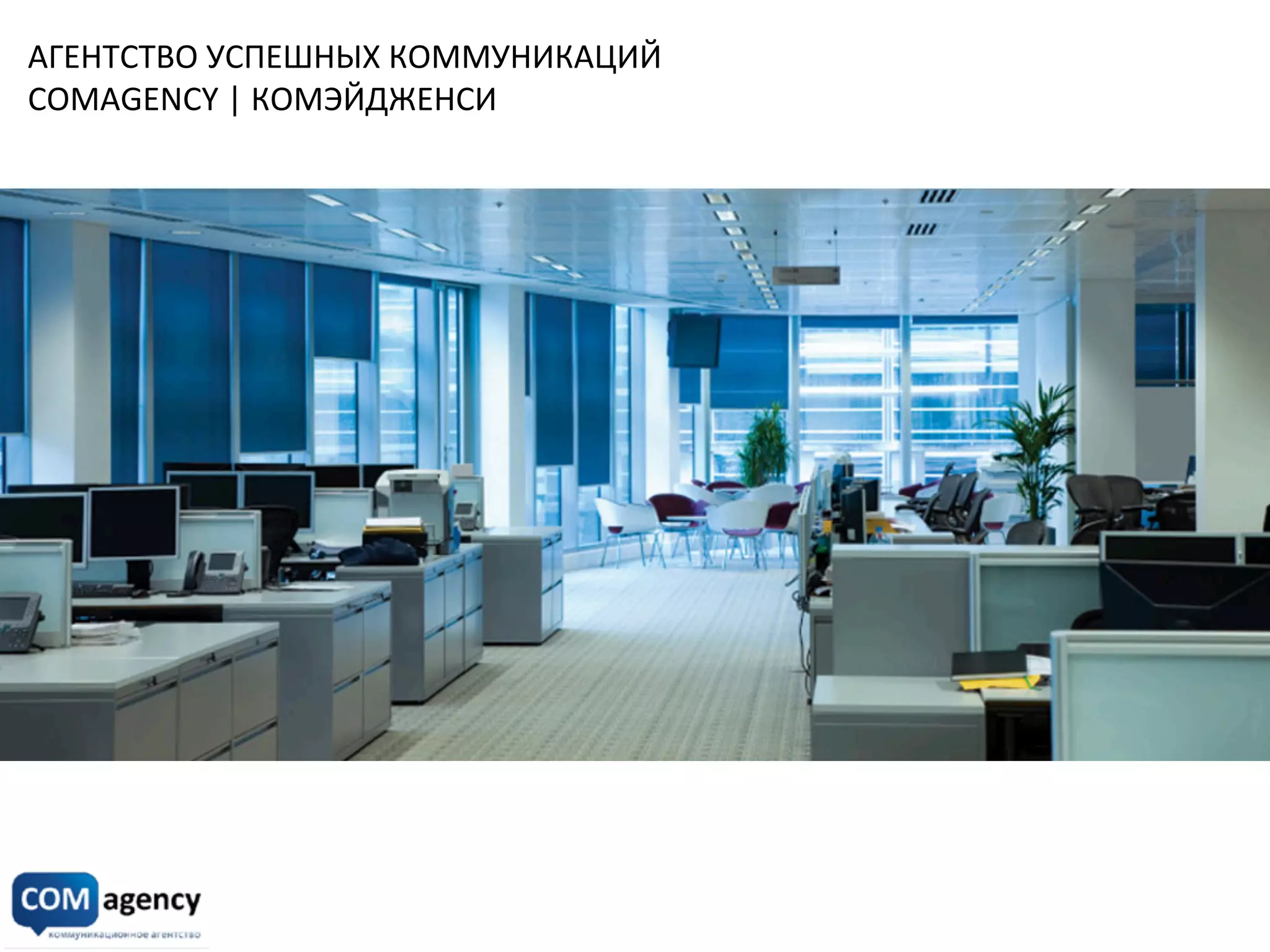 Агентство успешных коммуникаций Comagency, основанное в 2009 году, специализируется на разработке и реализации локальных и глобальных PR и интернет-компаний для российских и зарубежных клиентов в различных сегментах рынка. Оно предлагает широкий спектр услуг, включая маркетинговые исследования, создание и продвижение сайтов, организацию мероприятий и разработку рекламных материалов. Comagency также акцентирует внимание на индивидуальном подходе к каждому проекту и успешном сочетании классических и современных PR-методов.