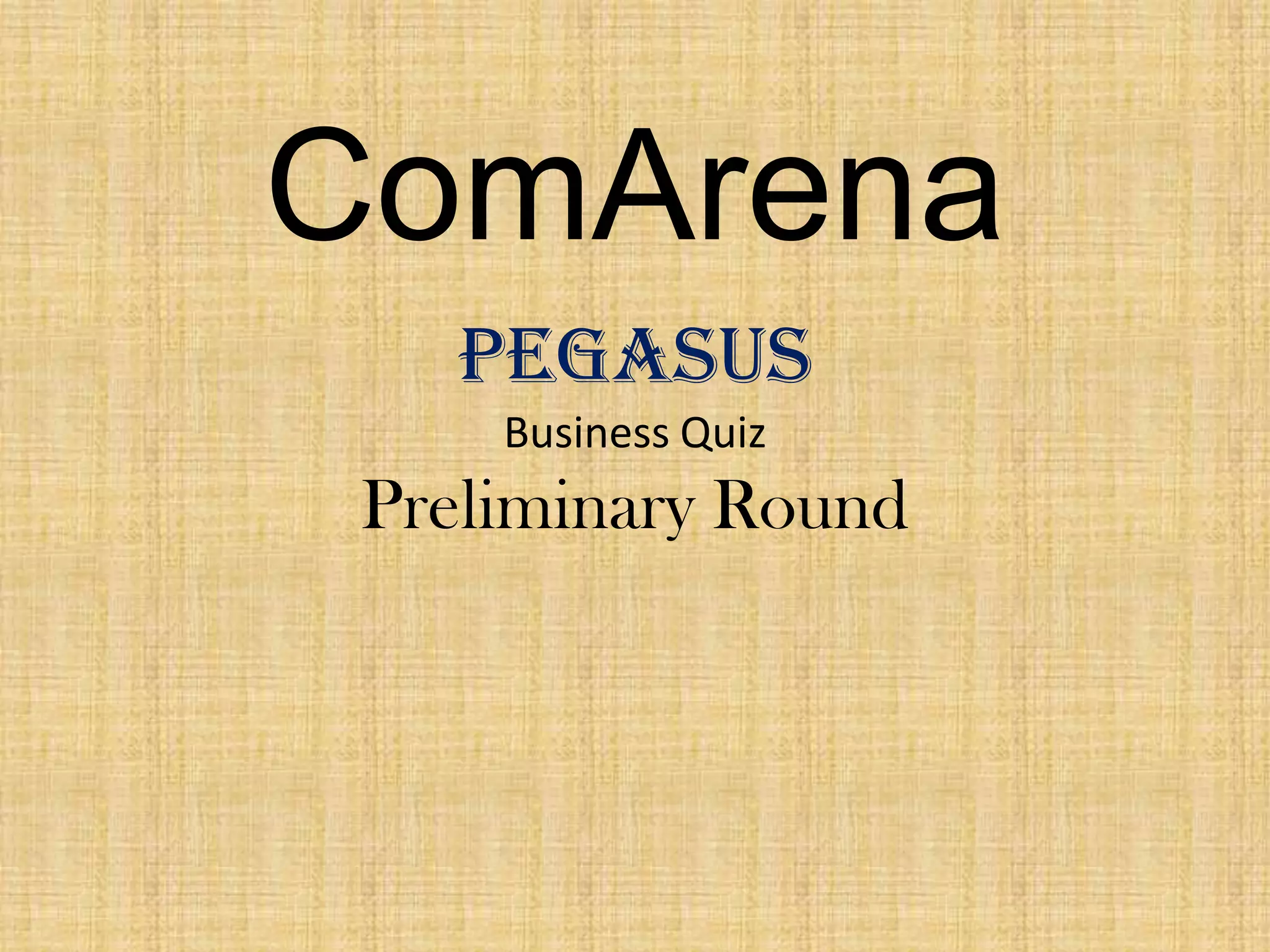 The document outlines the rules for a business quiz by Comarena Pegasus, consisting of 30 questions with no negative marking. It features a variety of topics ranging from history and geography to notable companies and individuals. Key questions include identifying products, personalities, and historical events related to business and culture.