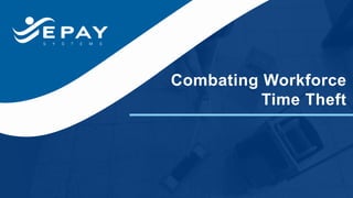 The document discusses workforce time theft, highlighting its primary forms such as buddy punching, early/late arrivals, and long breaks, which collectively account for significant losses for U.S. employers. It outlines various strategies to combat time theft, including the use of biometric time collection tools and the establishment of clear attendance policies. Additionally, it promotes EPAY Systems as a leading provider of comprehensive HCM solutions designed to address these issues.