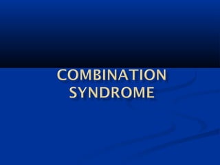 This document discusses combination syndrome, which occurs when a complete maxillary denture is opposed by a mandibular removable partial denture. This can lead to bone loss in the maxilla, enlargement of the mandibular tuberosities, and poor denture stability. Implant-supported prostheses and paying careful attention to occlusion design and retention are recommended to prevent these issues.