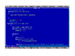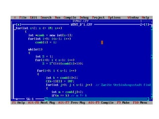The document discusses various combinatorial optimization problems including the minimum spanning tree (MST), travelling salesman problem (TSP), and knapsack problem. It provides details on the MST and TSP, defining them, describing algorithms to solve them such as Kruskal's and Prim's for the MST and dynamic programming for the TSP, and discussing their applications and time complexities. The document also compares Prim and Kruskal algorithms and discusses how dynamic programming can provide an efficient solution for the TSP in some cases but not when the number of targets is too large.
