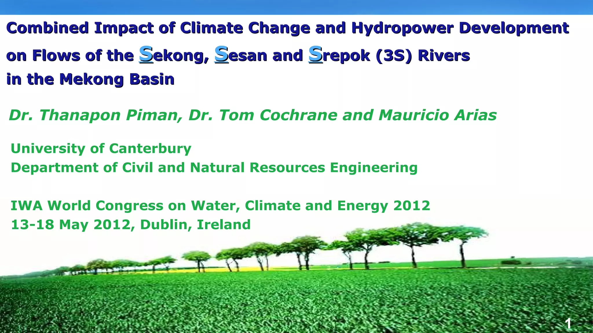 The document analyzes the combined effects of climate change and hydropower development on the flows of the Sekong, Sesan, and Srepok rivers in the Mekong basin, highlighting concerns over aquatic biodiversity and the dependence of local populations on river resources. It concludes that hydropower development has a more significant impact on river flows than climate change, which can exacerbate extreme weather events but may be managed through large storage dams. The study emphasizes the need for coordinated efforts across borders to address the resulting downstream impacts and potential conflicts.