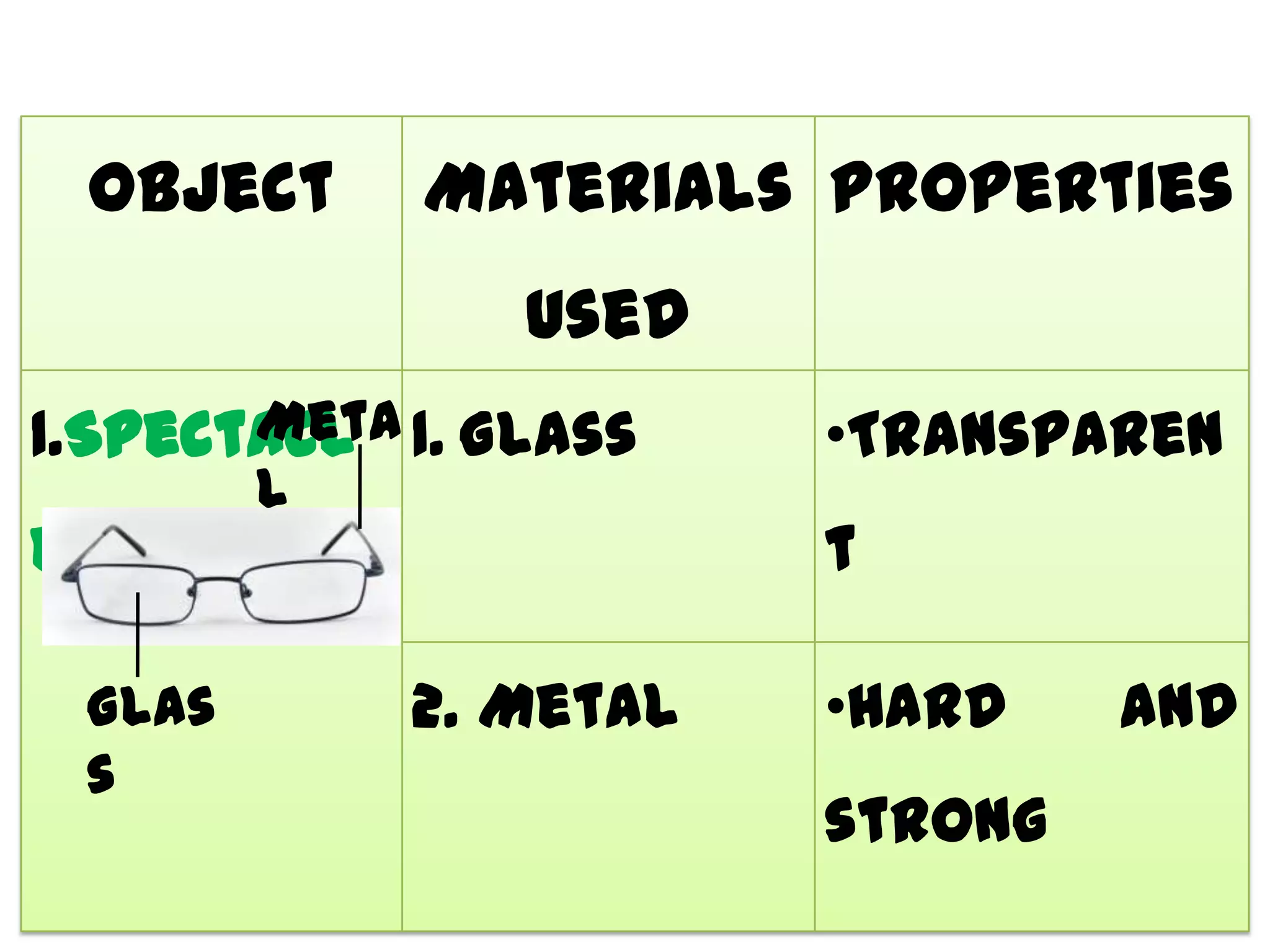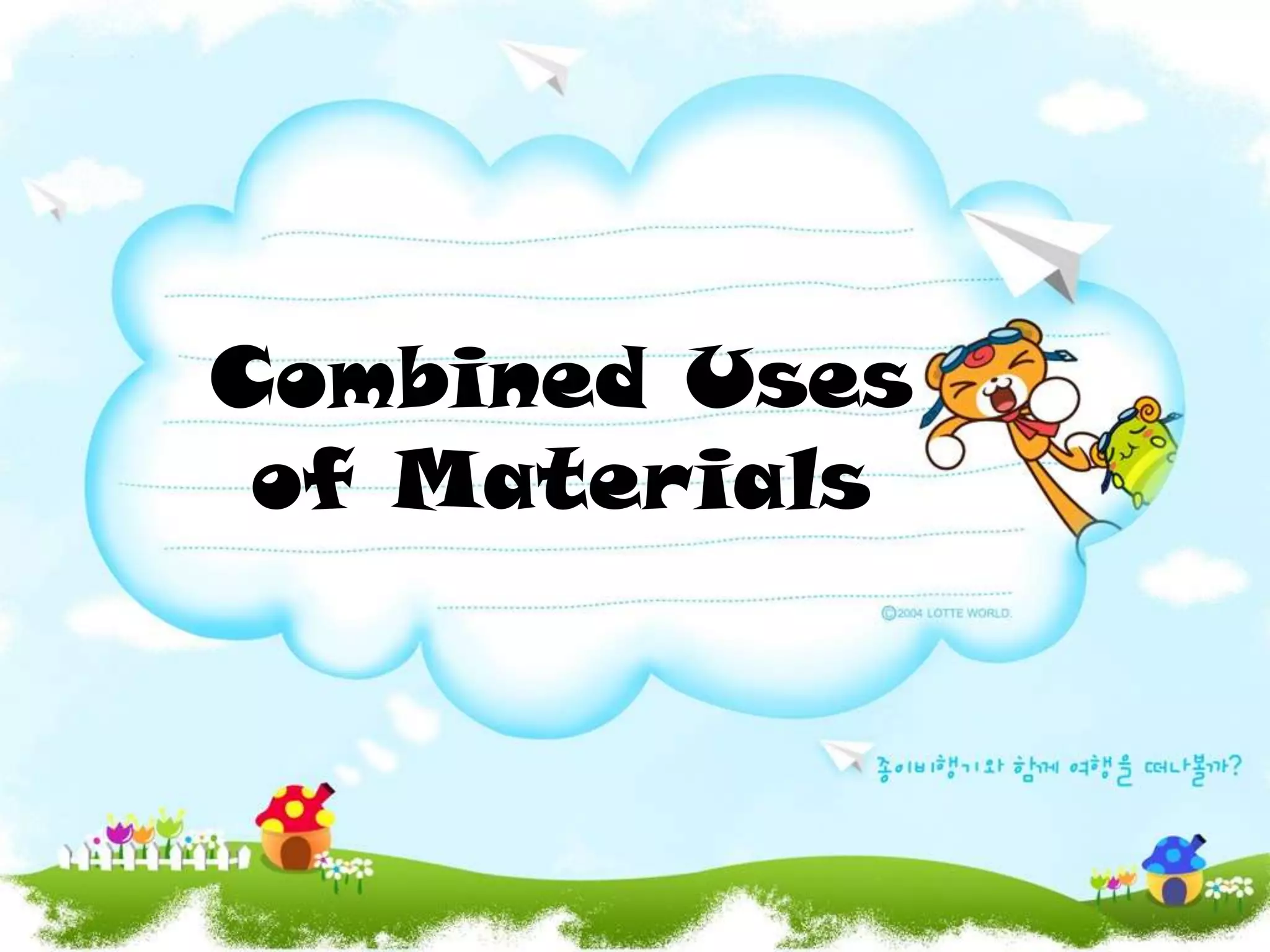 This document discusses the combined uses of materials in various objects and summarizes their key properties. It examines objects like spectacles, plugs, belts, umbrellas, frying pans, windows, electric irons, shoes and kettles. For each object, it identifies the materials used, such as glass, metal, plastic, leather and rubber, and summarizes their important properties like being transparent, insulating or conducting electricity, flexible, waterproof or able to conduct heat.