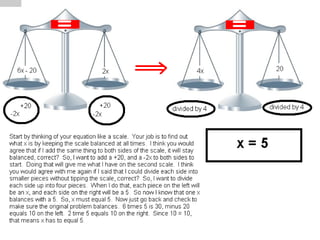 This document provides a quick lesson on combining like terms and solving simple algebraic equations, emphasizing the importance of simplifying problems. It explains that like terms have the same variables and offers examples and visual aids to help identify and combine them effectively. The document aims to make mathematical problems more manageable by demonstrating how to simplify expressions.