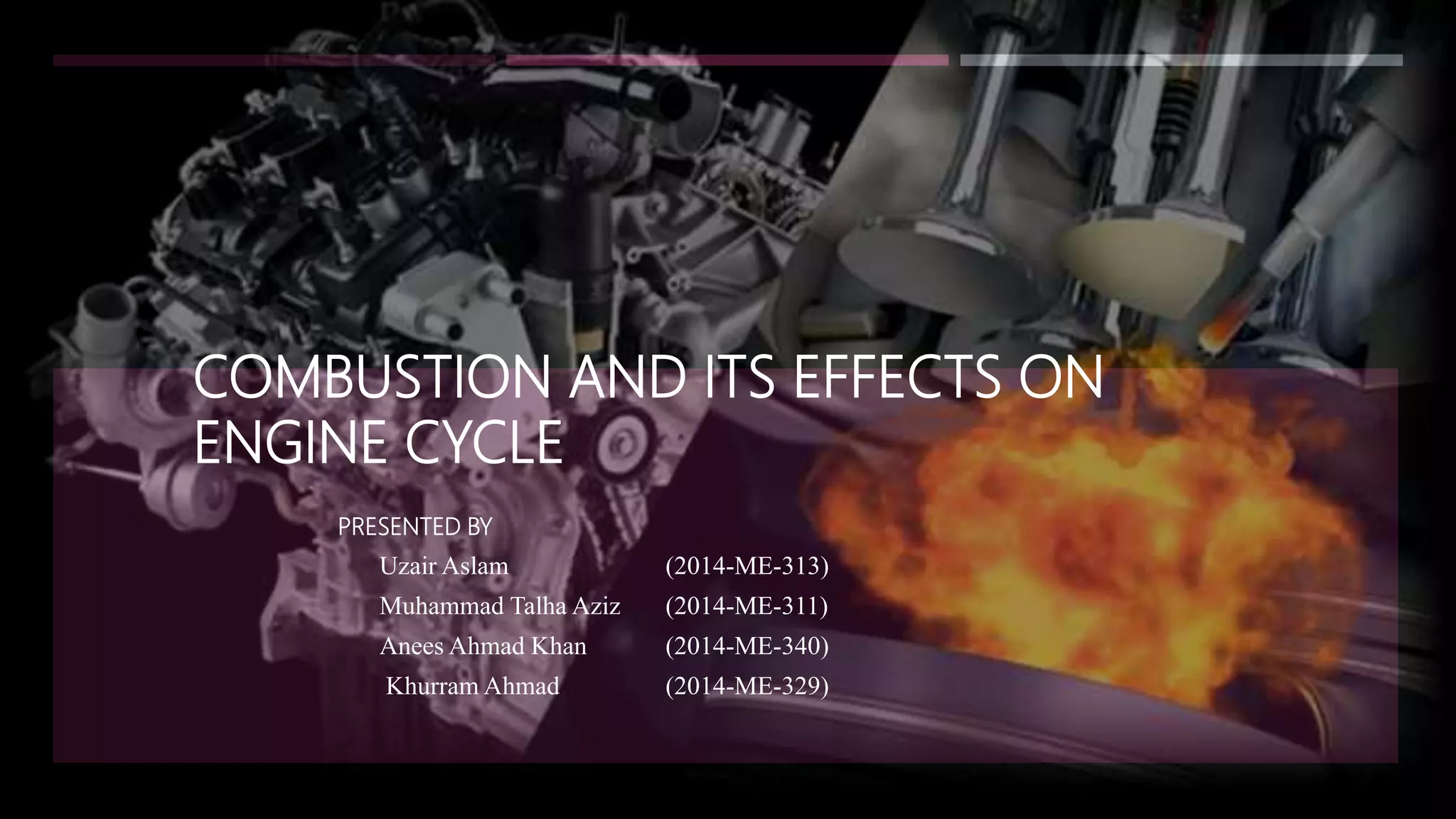 The document discusses the combustion process in internal combustion engines, detailing types such as normal and abnormal combustion, and their effects on engine performance, efficiency, and emissions. It highlights factors influencing combustion in spark ignition (SI) engines and common issues like knocking, providing methods for controlling these problems. Additionally, the document compares combustion stages and challenges in both spark ignition and compression ignition engines.