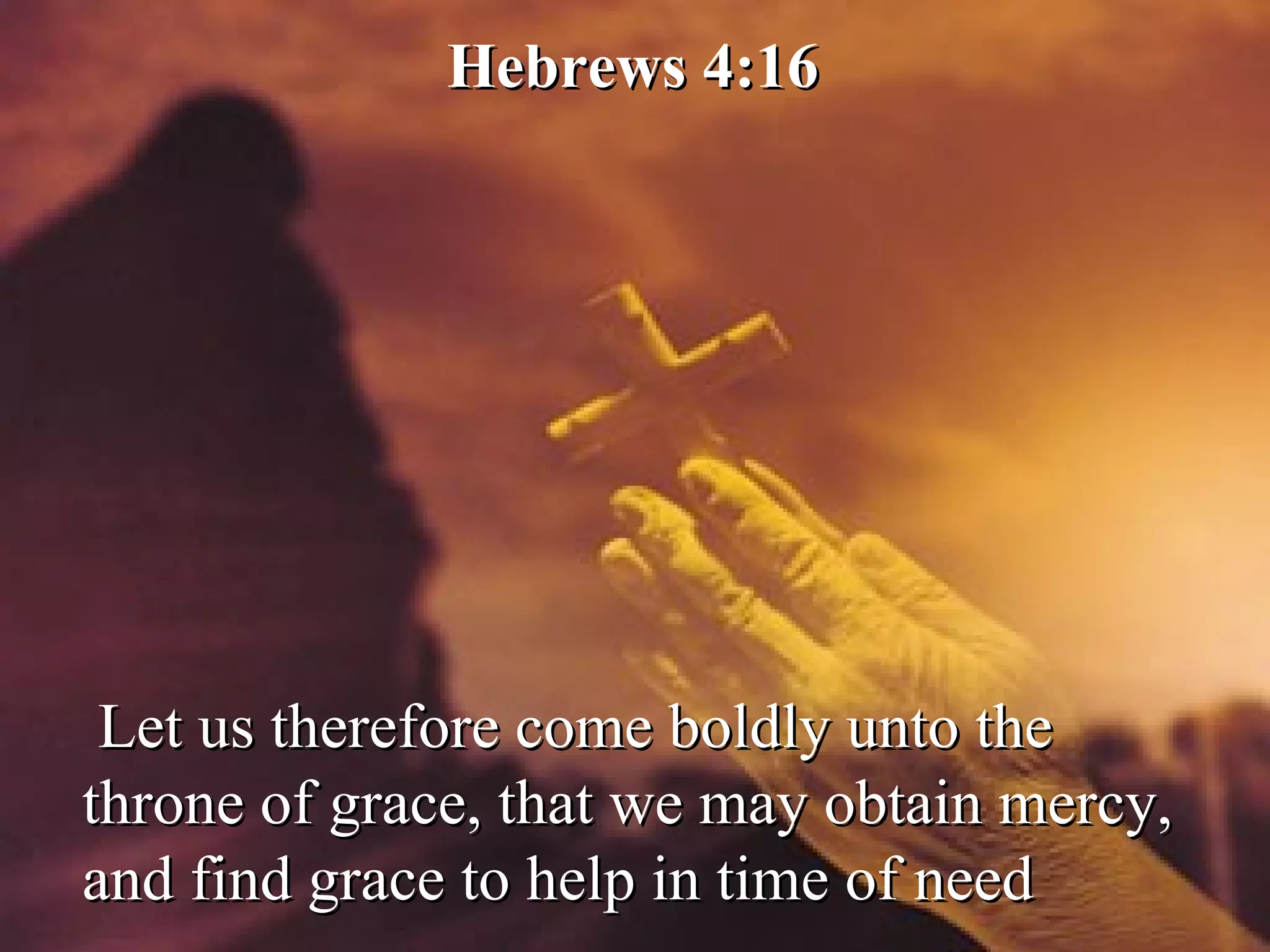 The passage encourages believers to approach God's throne with boldness so that they may receive mercy and grace during times of difficulty or need. It references Hebrews 4:16 which promises that those who come before God will find the help and strength they require to face life's challenges.