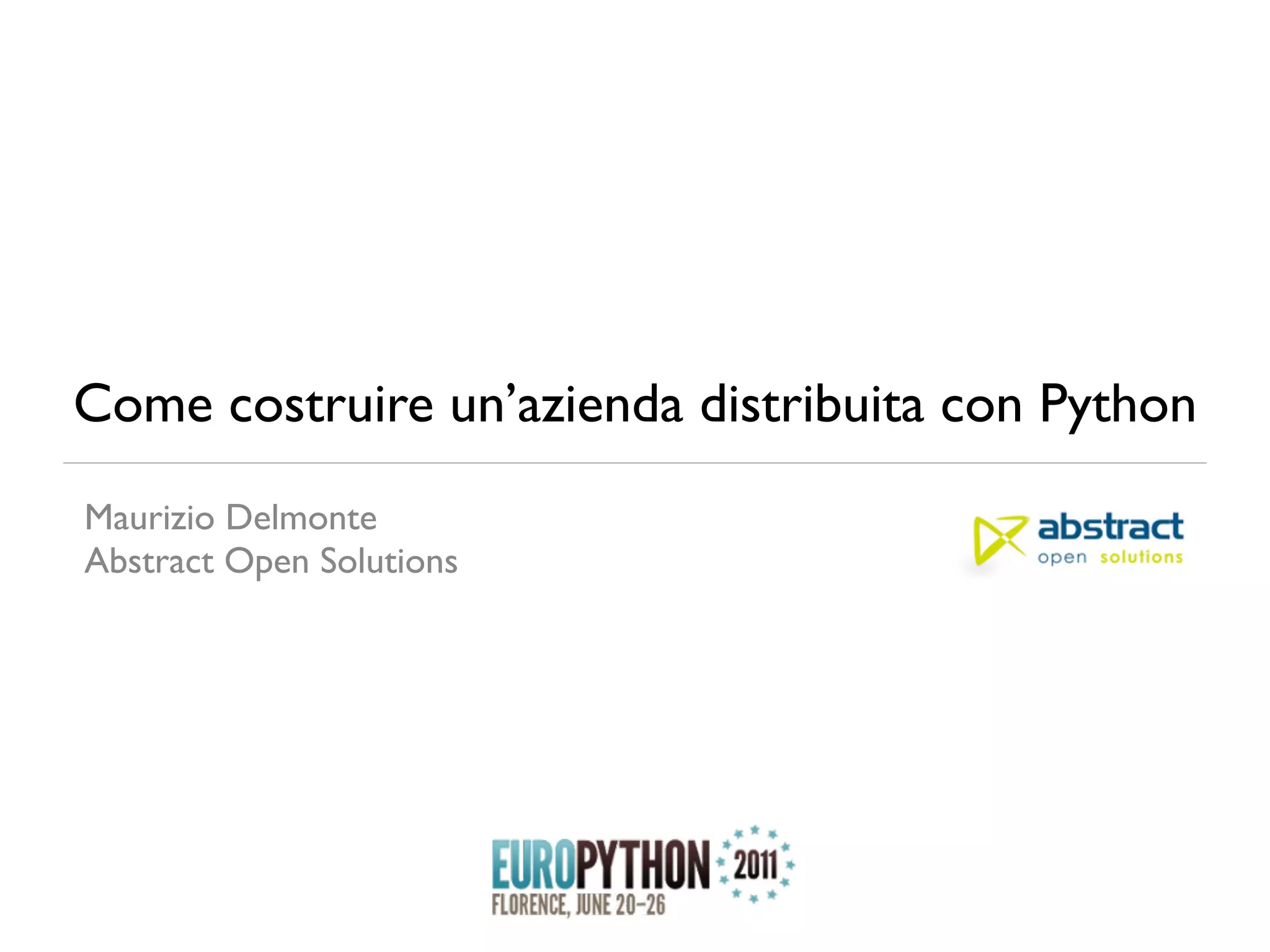 Il documento fornisce indicazioni su come costruire un'azienda distribuita utilizzando Python, sottolineando l'importanza della comunicazione e dell'informazione come fulcro della gestione. Viene presentato un mix di strumenti personalizzati, come Plone per la gestione dei contenuti e OpenERP per la gestione aziendale, per supportare attività distribuite. Si evidenziano anche tecniche di gestione dei progetti mediante iterazioni e storie utente, promuovendo un ambiente di lavoro agile e collaborativo.