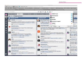 Il documento delinea un piano d'azione per migliorare la comunicazione e l'analisi delle performance digitali di un'organizzazione, con focus su obiettivi, risorse, pubblico e strategie web. Si evidenzia l'importanza di un coinvolgimento attivo del top management e di esperti interni, nonché l'analisi delle piattaforme e dell'utenza per affinare la strategia. Sono previsti interventi su contenuti, social media, advertising e partnership per aumentare la visibilità e l'engagement del sito.