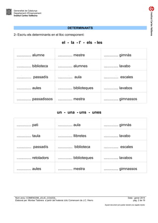 2- Escriu els determinants en el lloc corresponent: