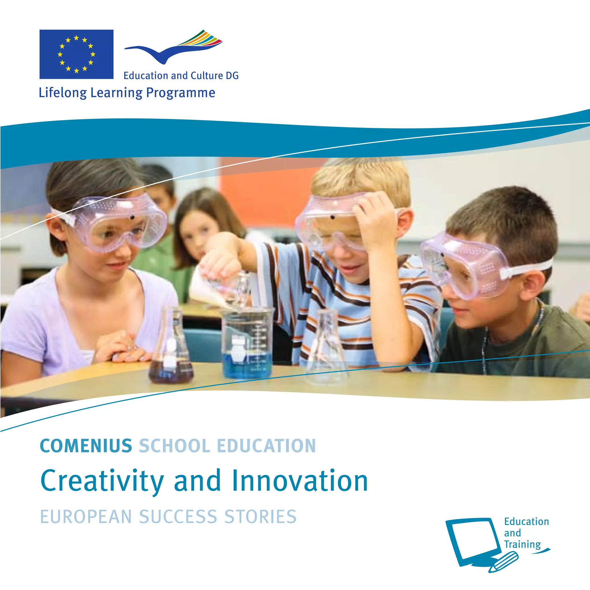 The document discusses the Comenius program, which promotes creativity and innovation in school education across Europe through various multilateral projects. It highlights how schools can enhance student creativity by embracing diversity and using innovative teaching methods, and provides examples of successful projects focused on areas such as language learning, violence prevention, and teacher training. The document emphasizes the importance of cooperation among educators to improve school climate and educational outcomes for diverse student populations.
