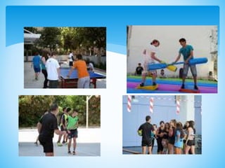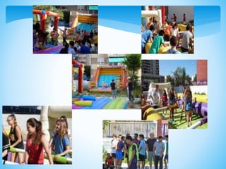 Our school, INS EUROPA, held a sports day on the last day of the school year and Comenius project. They planned various physical activities like football, volleyball, and dancing to remind students of the importance of daily exercise and reducing screen time. Students enjoyed participating, especially playing on the bouncy castle rented by the parents' association. At the end, diplomas were given to students who participated in the 2012-2014 Comenius project on culinary traditions and fast food.
