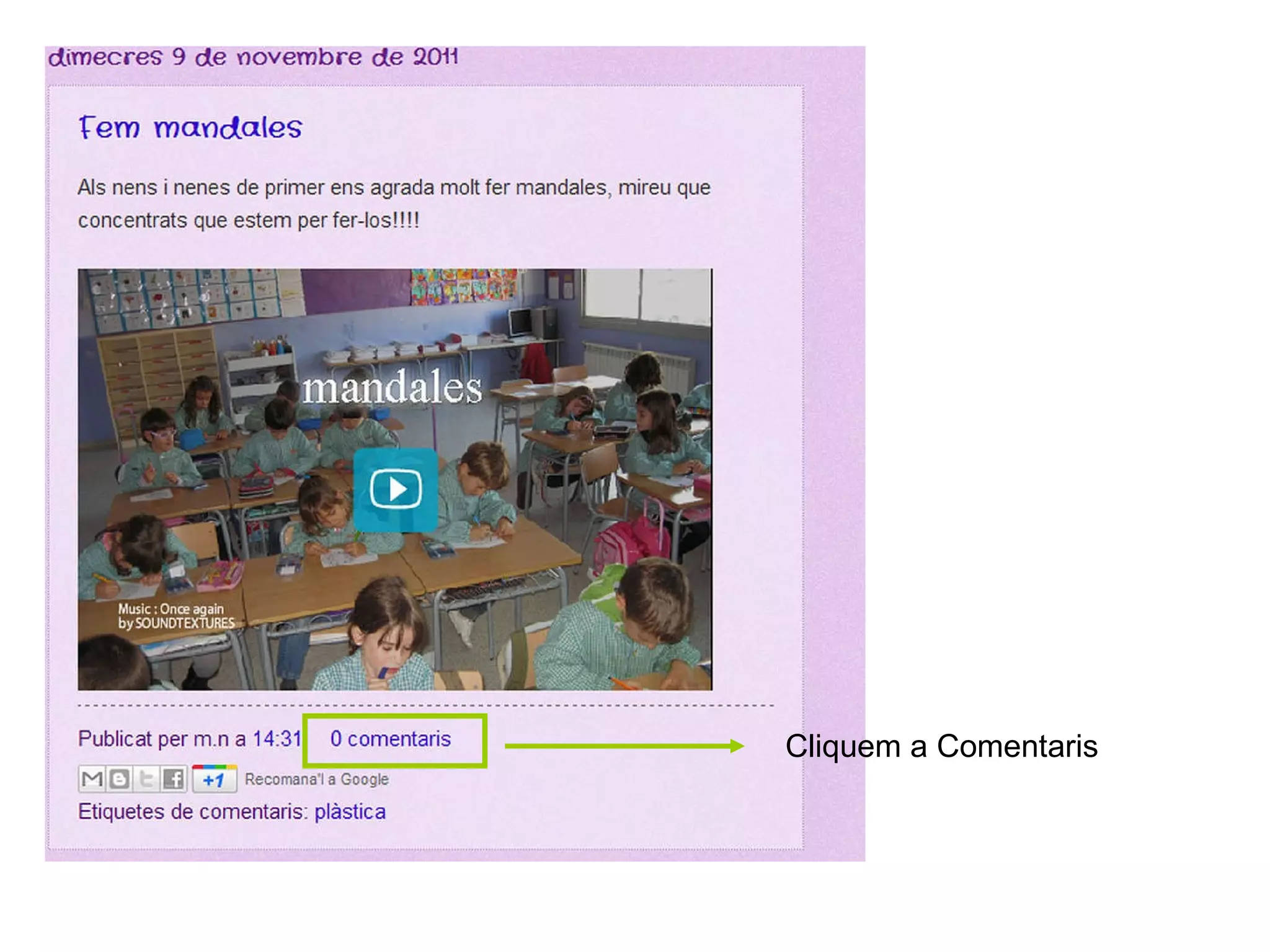 Comentaris 1. 2. Escrivim aquí el nostre comentari Cliquem a publica el comentari Copiem les lletres anteriors en el requadre Cliquem a Nom i introduïm el nostre nom (aquest es mostrarà al comentari)