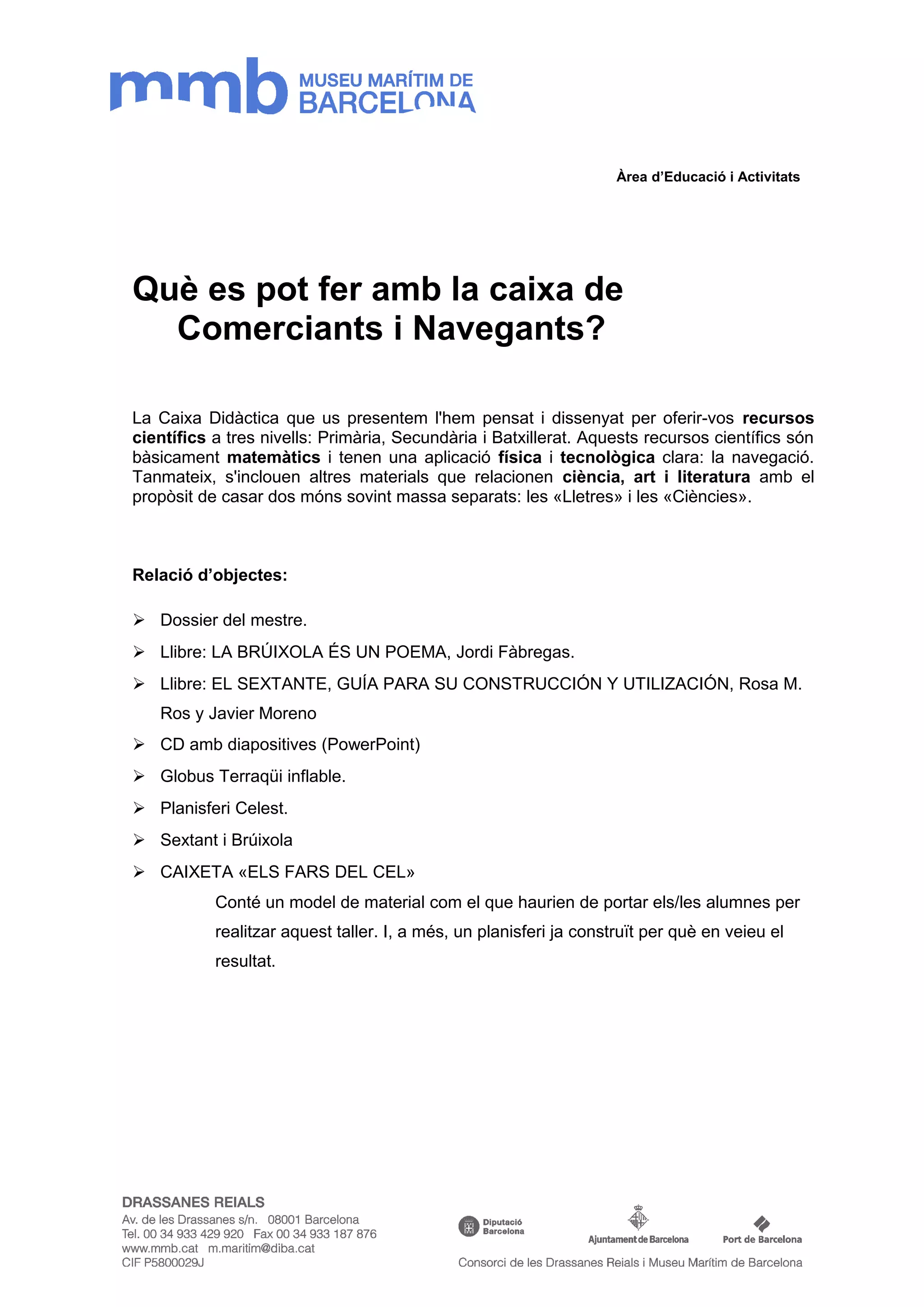 QUÈ ES POT FER AMB LA CAIXA DE “COMERCIANTS I NAVEGANTS”?