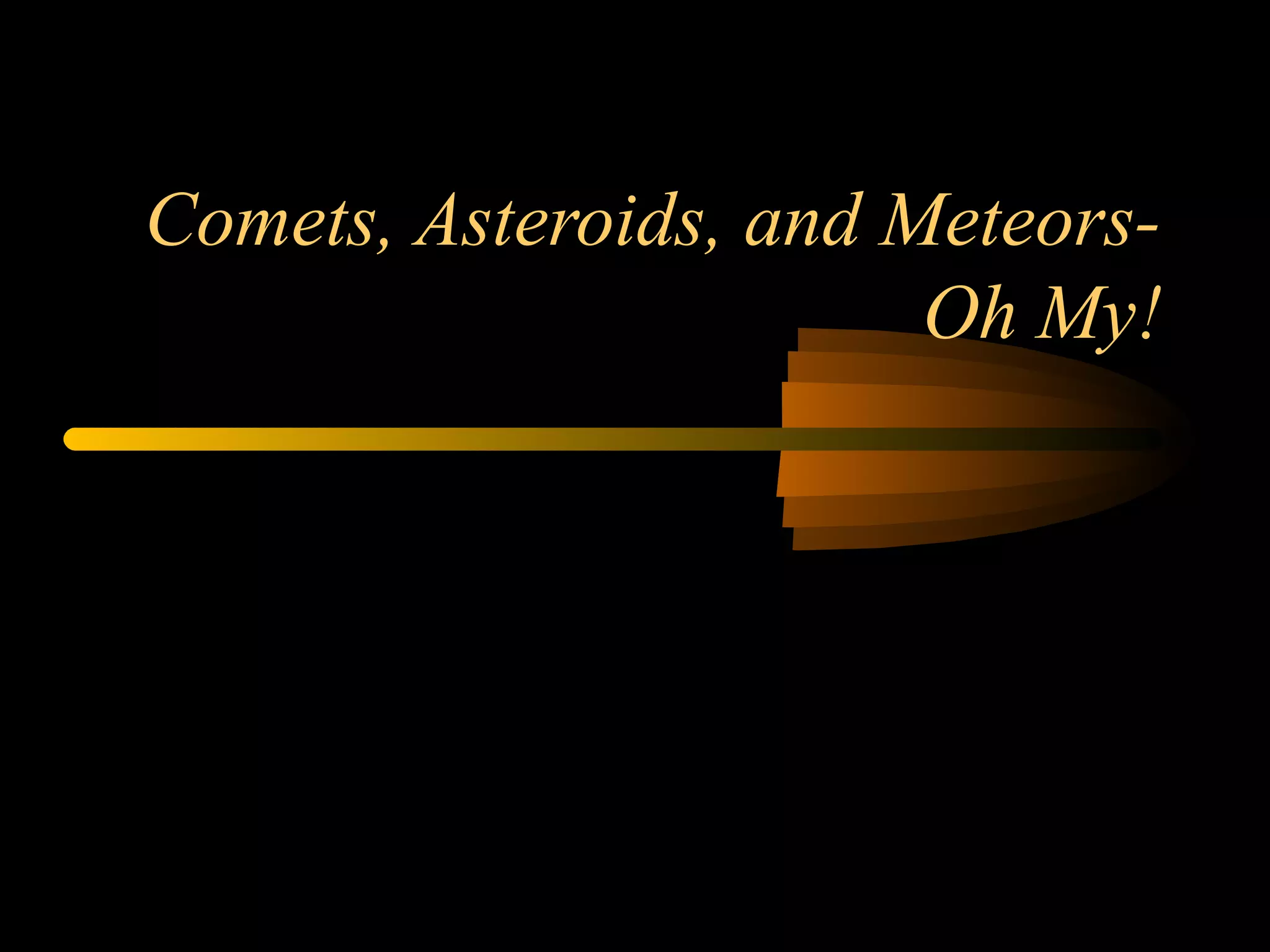 Comets are icy, dusty clumps that originate in the outer solar system. They have elliptical orbits that can bring them close to the sun, where their ice vaporizes to form a coma and tail. Asteroids are rocky remnants from the early solar system located mainly in the asteroid belt between Mars and Jupiter. Jupiter's gravity prevented an asteroid from forming into a planet. Meteoroids are small rocks and dust that become meteors as they burn up in Earth's atmosphere, or meteorites if they survive entry and hit the surface.