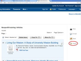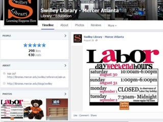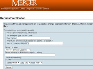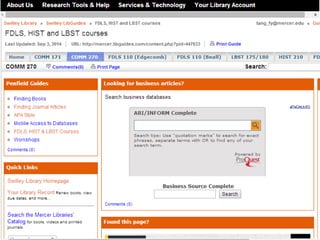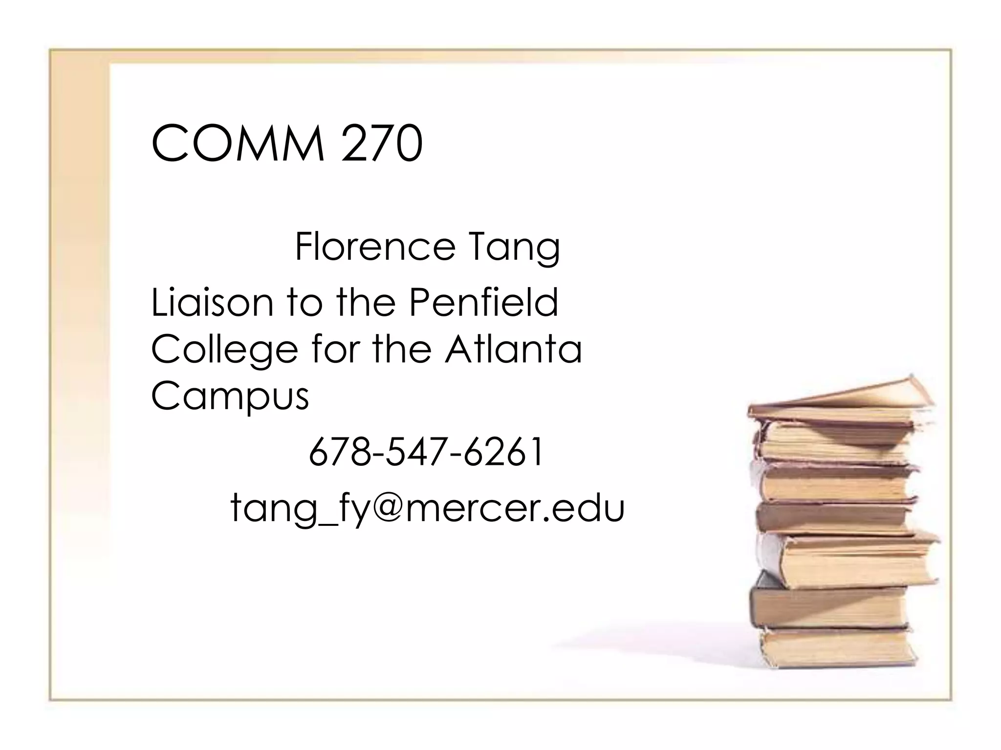 This document provides information about reference librarians and research resources at Mercer University's libraries. It includes contact information for Florence Tang, a reference librarian, as well as reference hours. It also outlines steps for developing a research plan and describes various information sources like books, journals, magazines, and websites. It provides guidance on evaluating sources and finding articles using library databases.