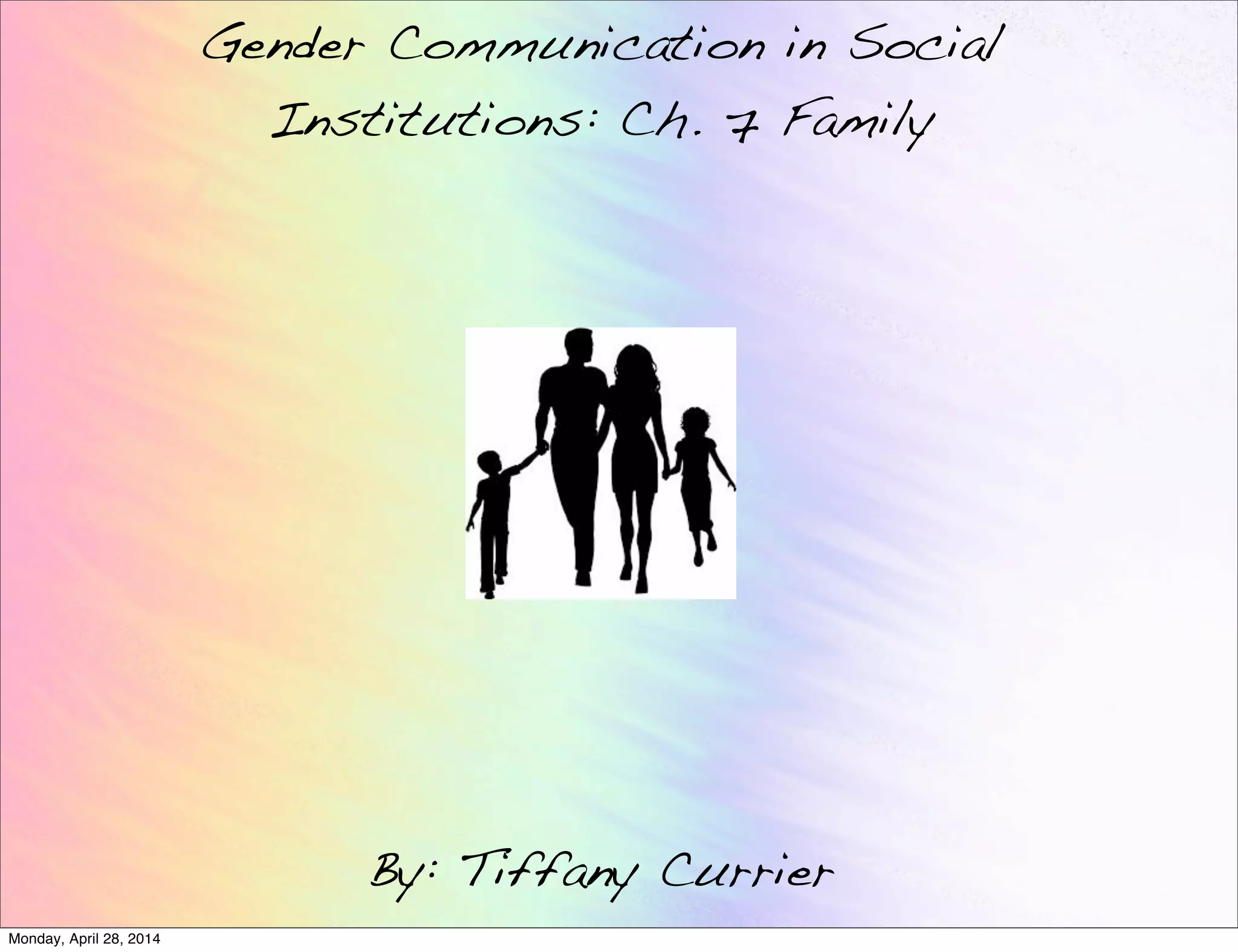 This document summarizes and discusses several sections from the chapter "Gender Communication in Social Institutions: Ch. 7 Family" by Tiffany Currier.